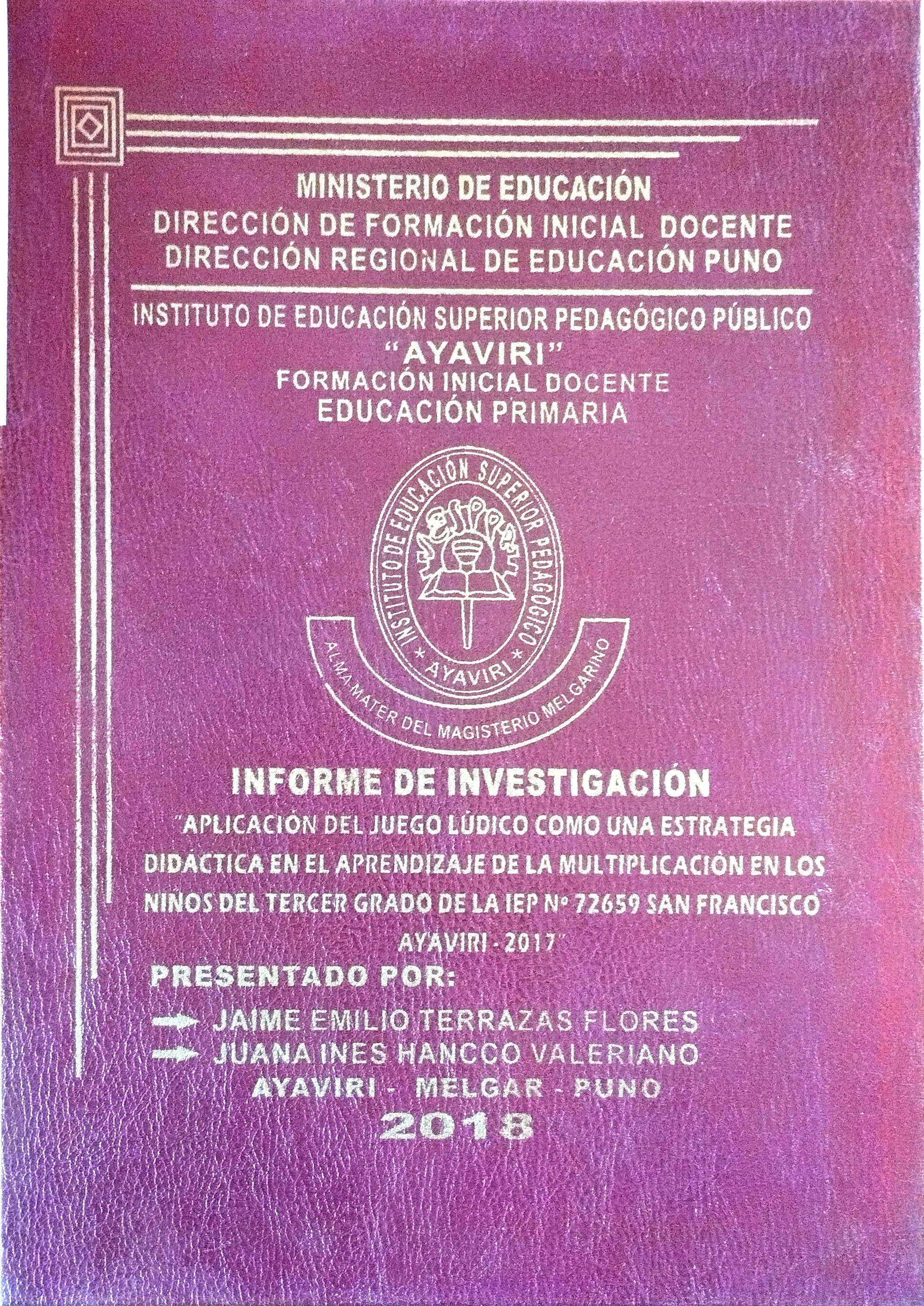 Aplicación del juego ludico como una estrategia didactica en el aprendizaje de la multiplicacion en los niños del tercer grado de la IEP N° 72659 San Francisco Ayaviri 2017 **Disponible**