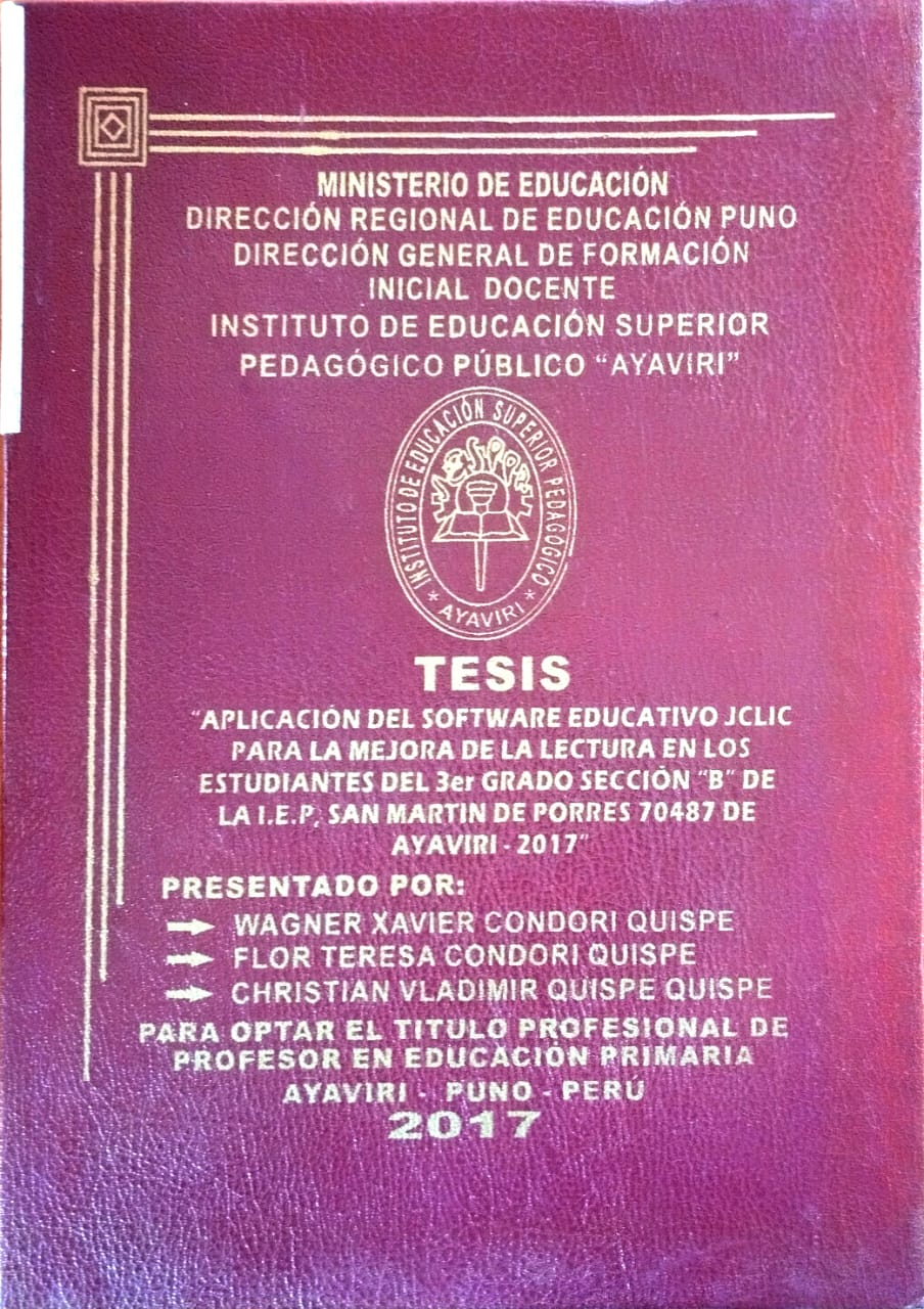 Aplicacion del software educativo JCLIC para la mejora de la lectura de los estudiantes del 3er grado seccion "B" de la I.E.P, San Martin de Porres 70487 de Ayaviri - 2017