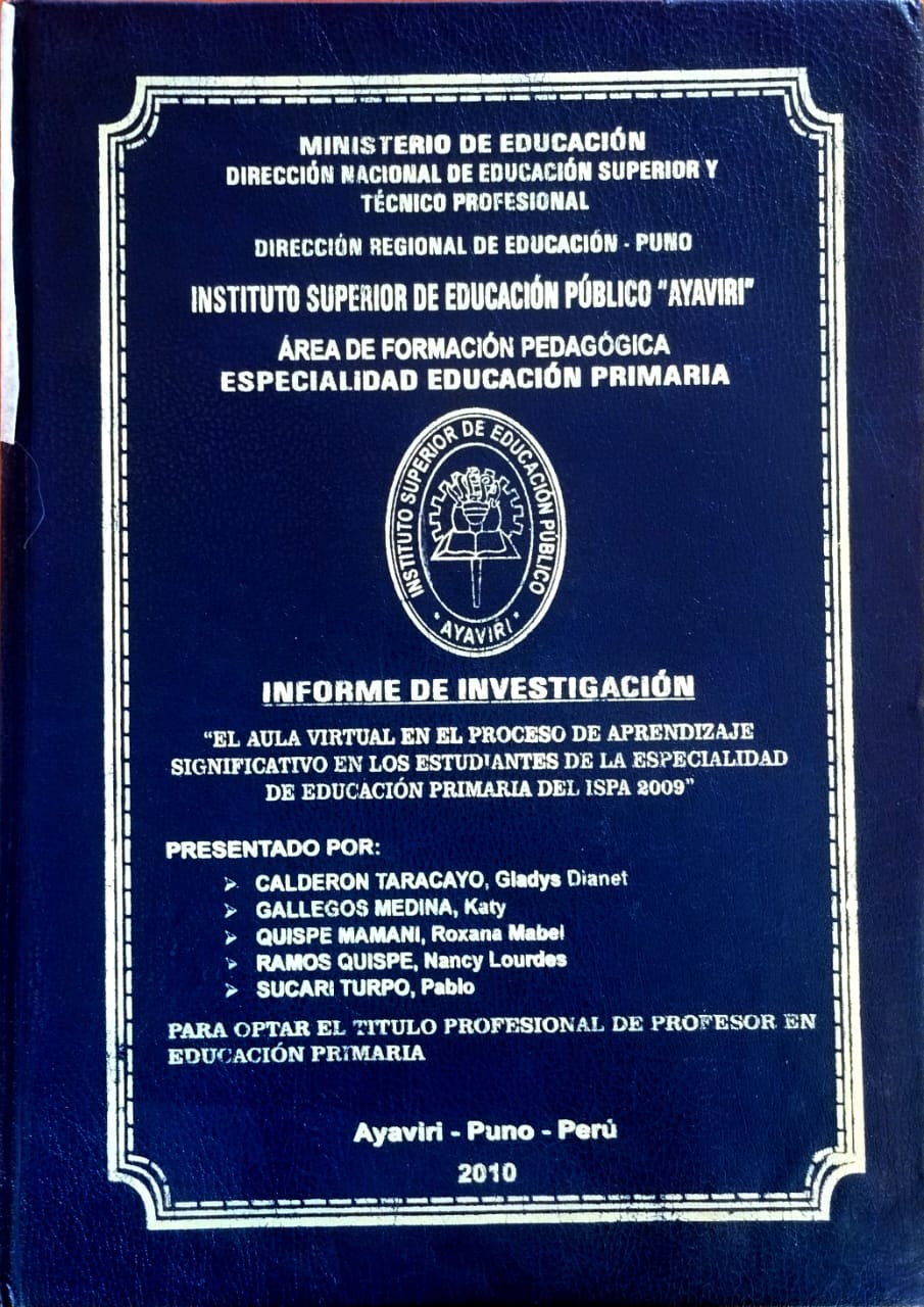 - CALDERON TARACAYO, Gladys Dianet / GALLEGOS MEDINA, Katy / QUISPE MAMANI, Roxana Mabel / RAMOS QUISPE, Nancy lourdes / SUCARI TURPO, Pablo