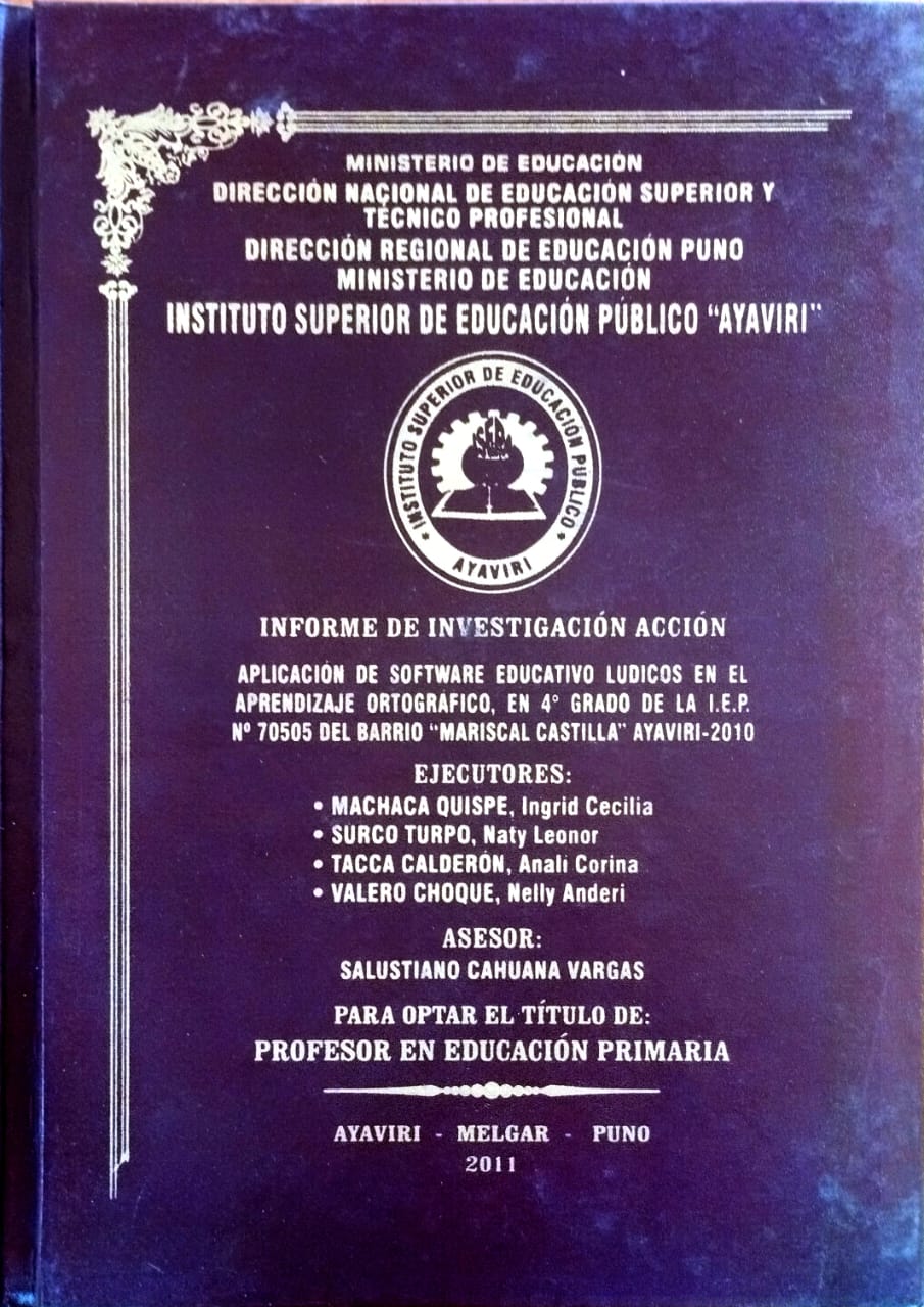 Aplicación de software educativo ludicos en el aprendizaje ortografico en 4to grado de la I.E.P Nº 70505 del barrio Mariscal Castilla Ayaviri 2010.
