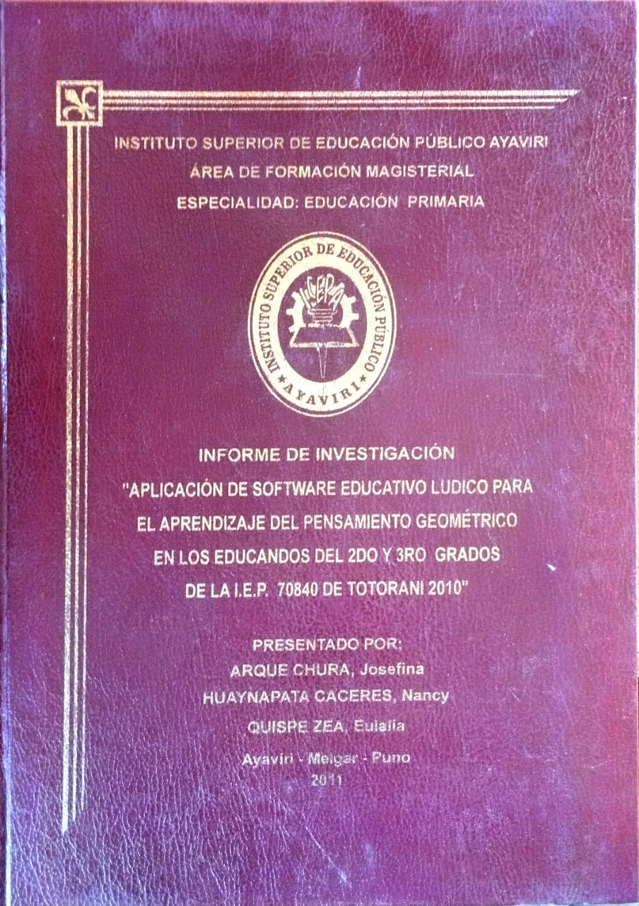 Aplicación de software educativo ludico para el aprendisaje del pensamiento geometrico en los educandos del 2do y 3ro grados de la I.E.P 70840 de Totorani 2010
