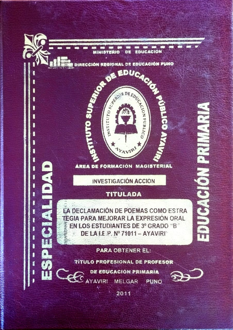 La declaracion de poemas como estrategia para mejorar la exprecion oral en los estudiantes de 3 grado B de la IEP Nº 71011 Aayaviri