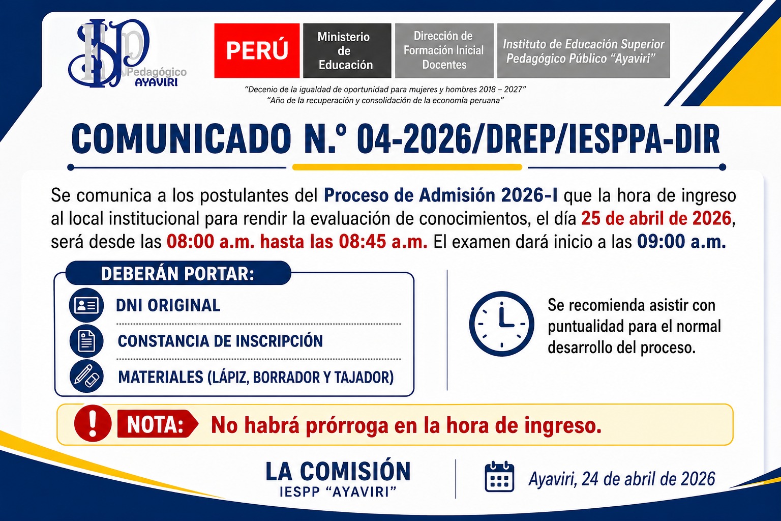 Comunicado Proceso de Admisión 2026-I