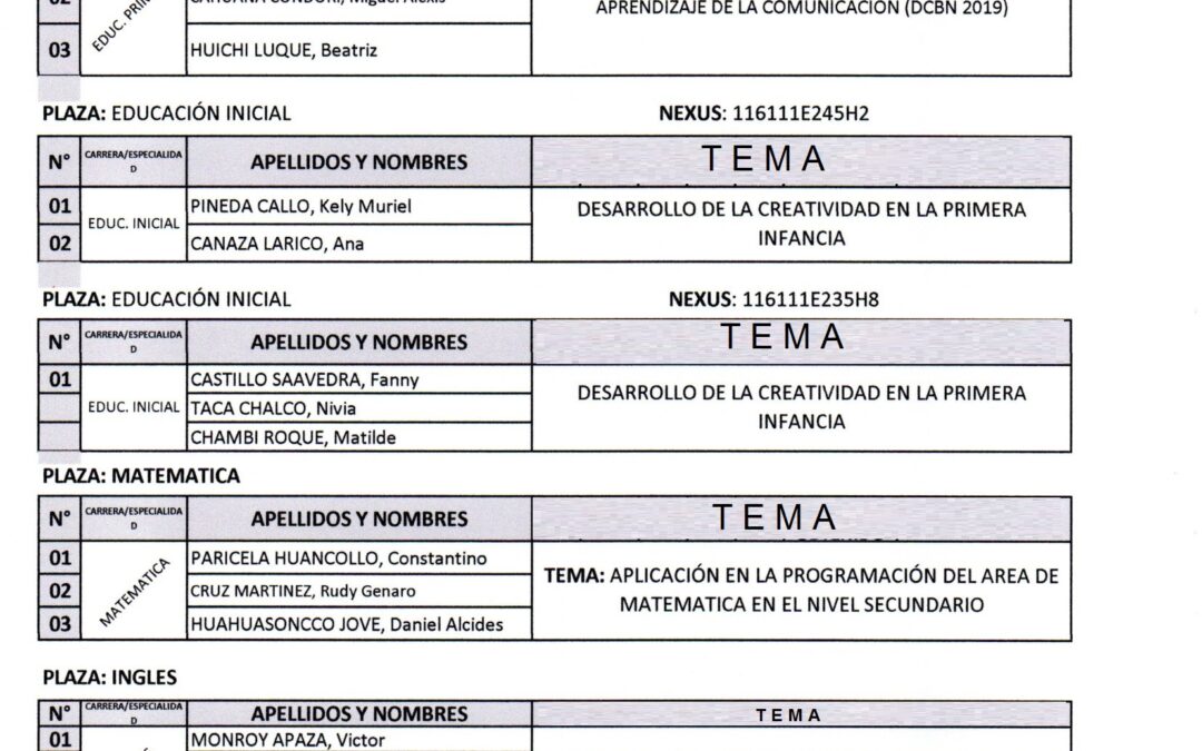 • KLEIBER VARGAS en CONVOCATORIA DOCENTE