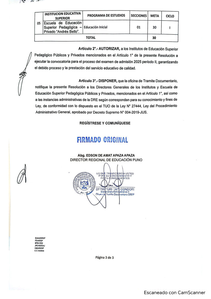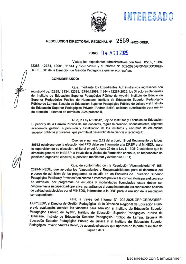 AUTORIZACIÓN DE EXAMEN DE ADMISIÓN 2025-II MEDIANTE LA RESOLUCIÓN DIRECTORAL REGIONAL N° 2859-2025-DREP