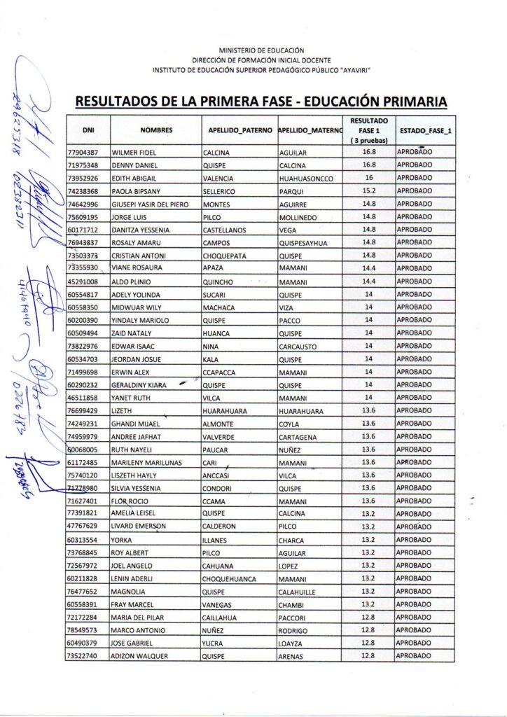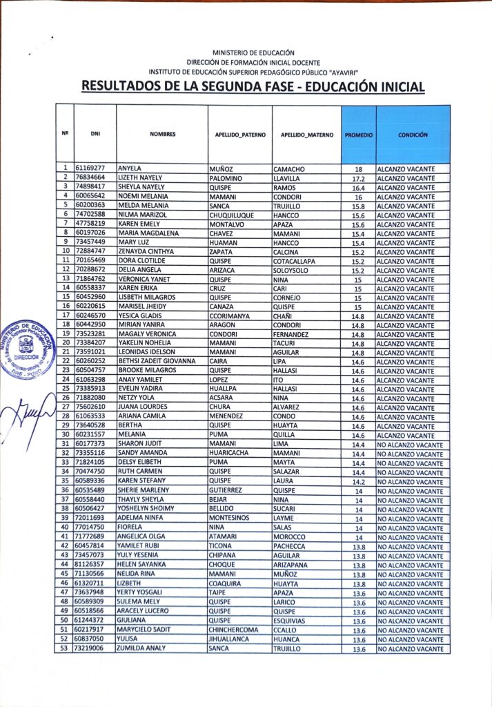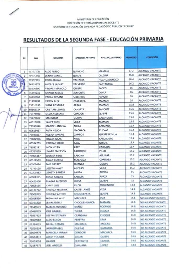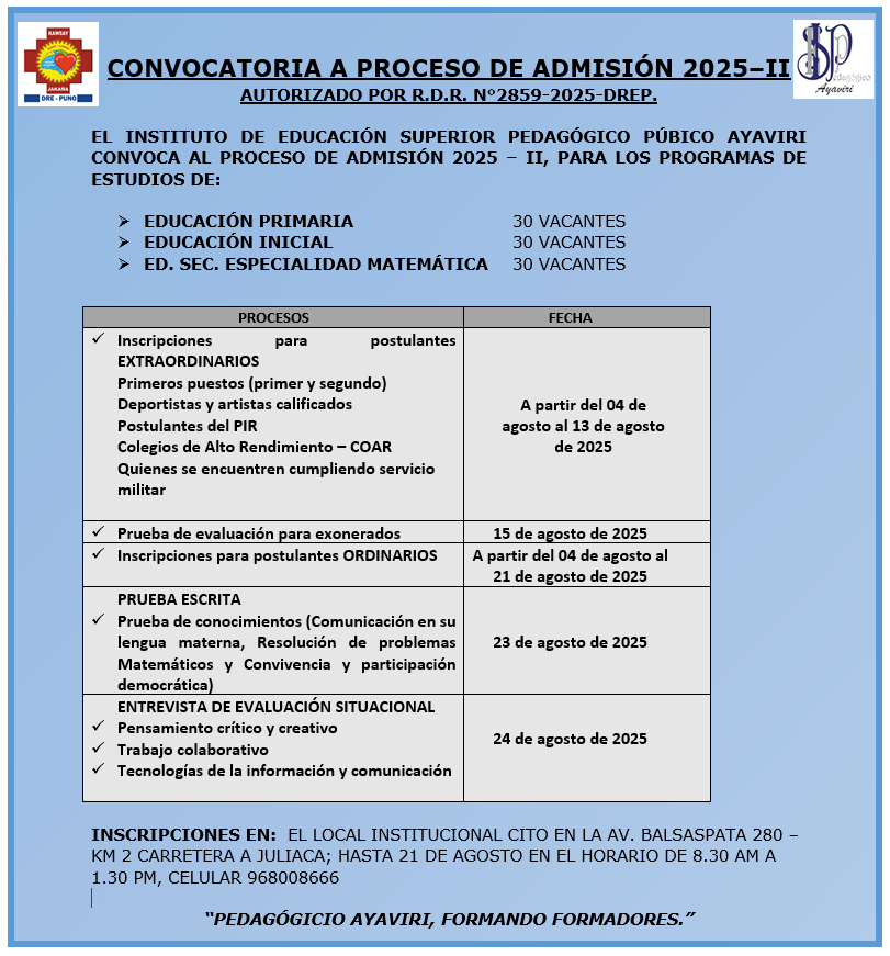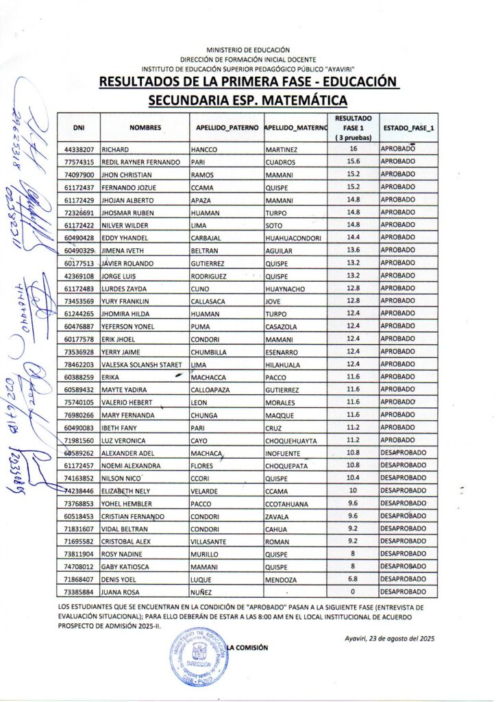 RESULTADOS FINALES DEL PROCESO DE ADMISIÓN 2025-II AL PEDAGÓGICO AYAVIRI